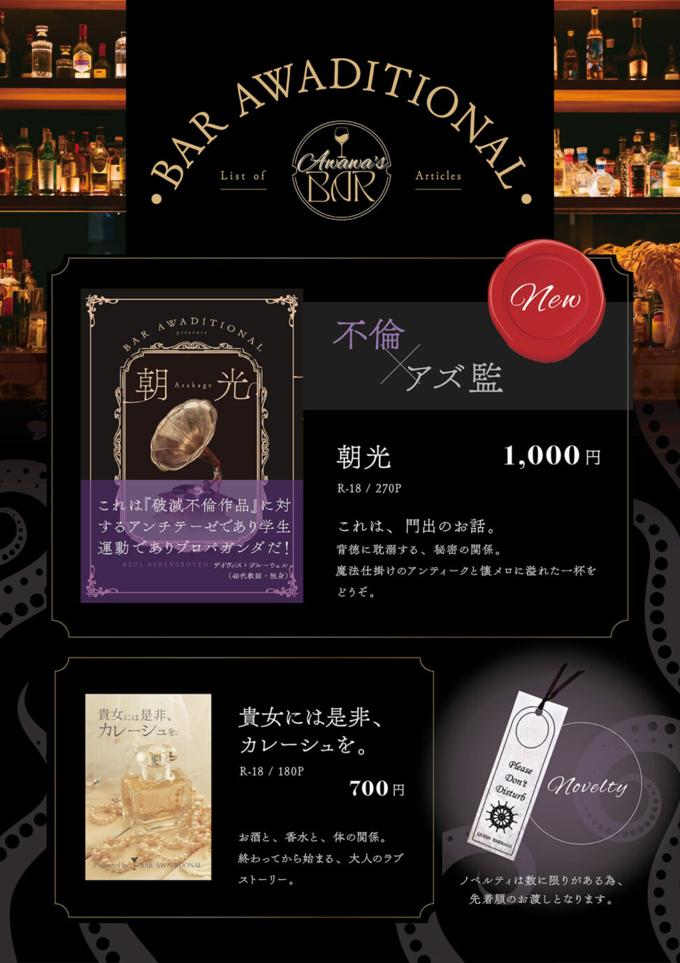 • all エレガント・ゴージャス お品書き クール・スタイリッシュ ダーク・ミステリアス